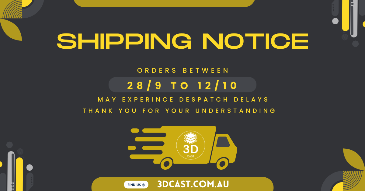 At 3D Cast our goal is to get your order shipped fast as possible! Most orders are processed on the same day so you don't have to wait any longer for your products. You can only buy stock that we have on hand so there's no waiting on back orders. From time to time we will have pre-orders so you can secure yourself a new product.