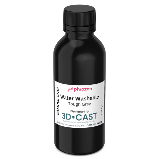Phrozen Water Washable Tough Gray 200g 3D printing resin sample bottle. Perfect for testing out this type of 3D printing resin on your 3d printer before buying a bigger bottle.