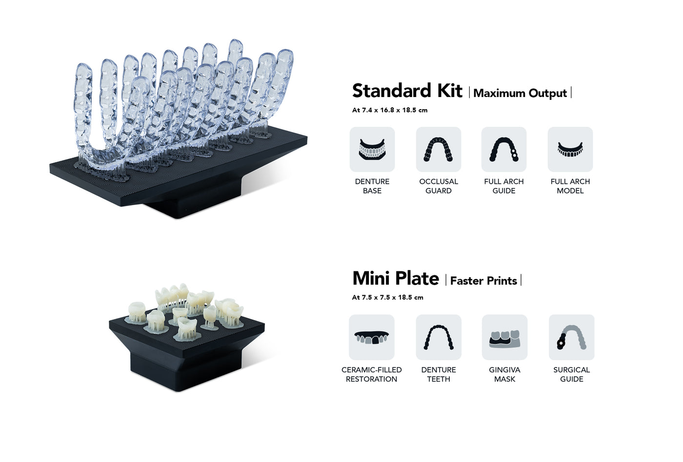 - Mini Kit — optimised for faster single-item prints and reduced cleaning time.