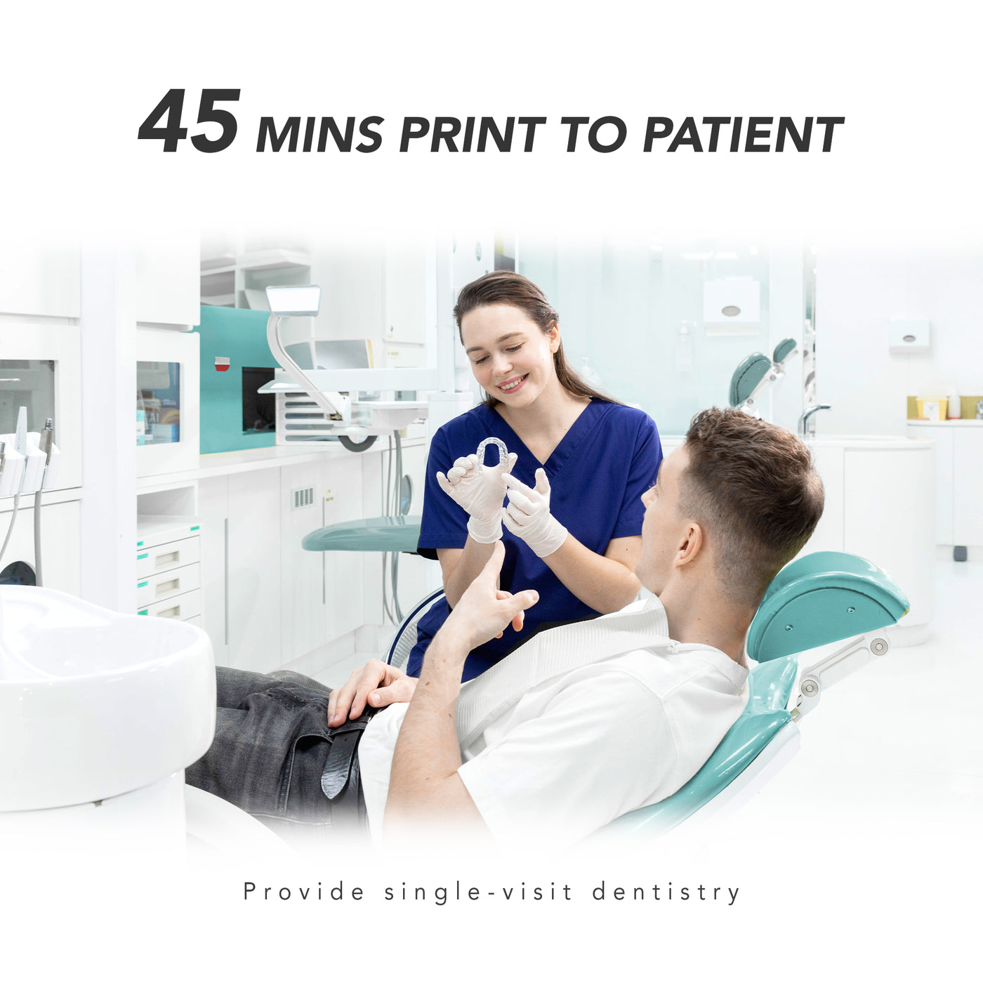 - Print to patient capability in ~45 minutes for many dental applications.