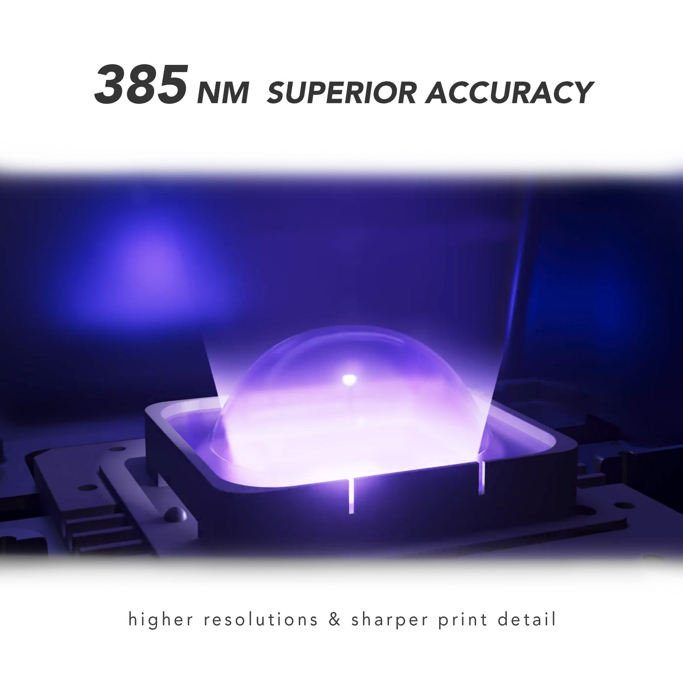 - 385 nm industrial UV LCD light source — optimised for dental materials and precision.