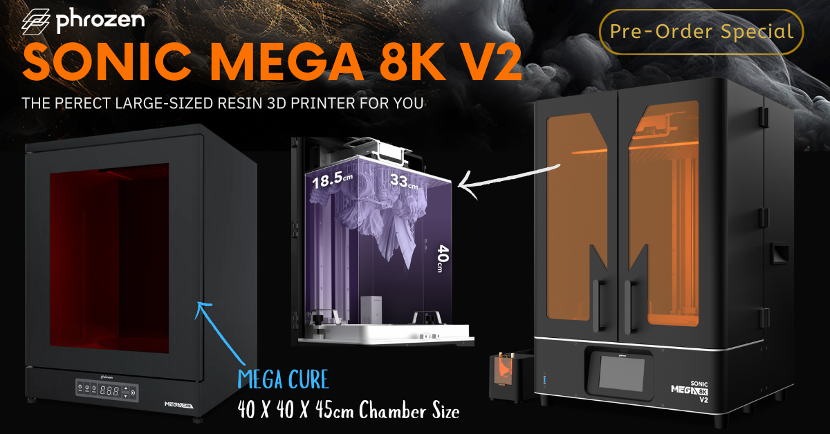 Phrozen Sonic Mega 8K V2 Printer – Print huge models with jaw-dropping 8K detail and faster curing speeds.