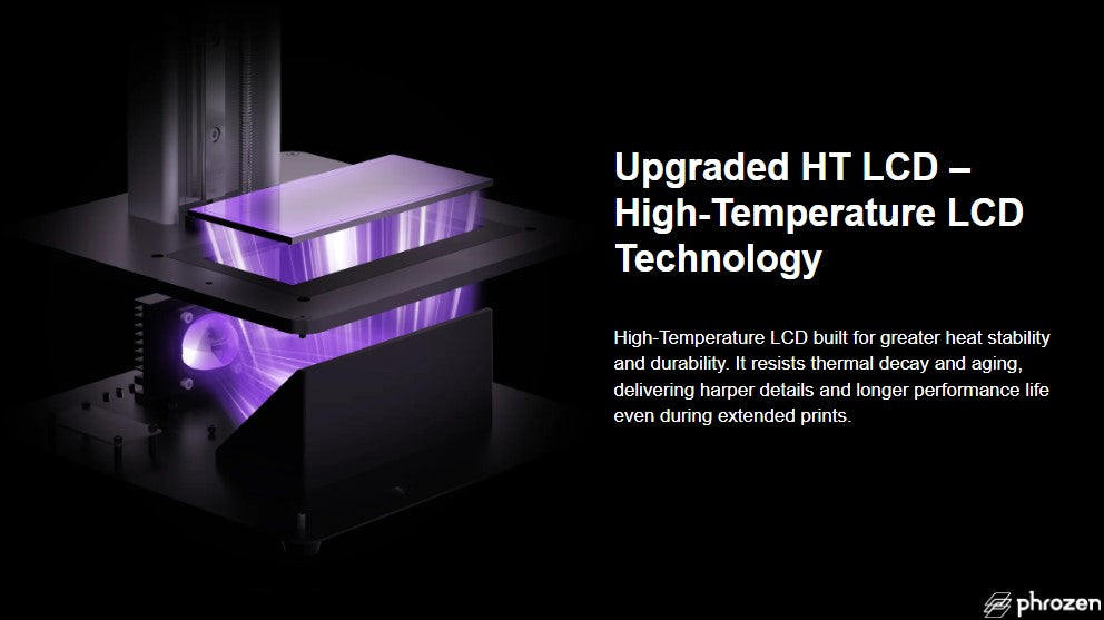 The new Mini 8K S LCD module offers higher heat tolerance, an improved contrast ratio and more stable output. This enhancement increases long-term durability, reduces the risk of panel distortion and produces cleaner, sharper prints. Phrozen confirms that the upgraded screen provides greater heat resistance, a longer lifespan and more stable image performance for an improved user experience.